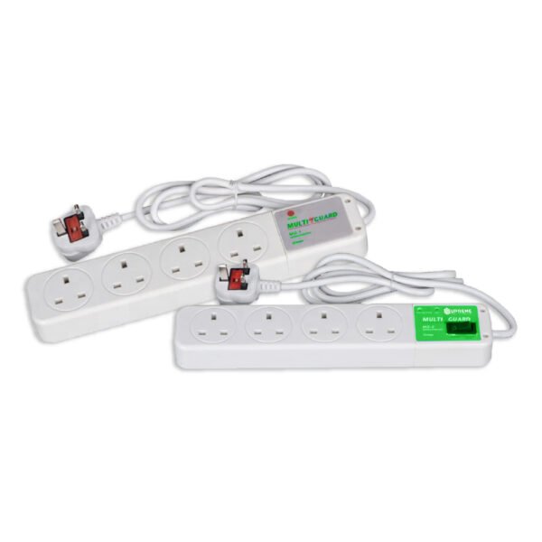 The Multi Guard MG-1 and MG-2 is a rugged 4-way protection strip. On 4 protected outlets, the Multi Guard protects against spikes/surges and has a maximum power of 13Amps.